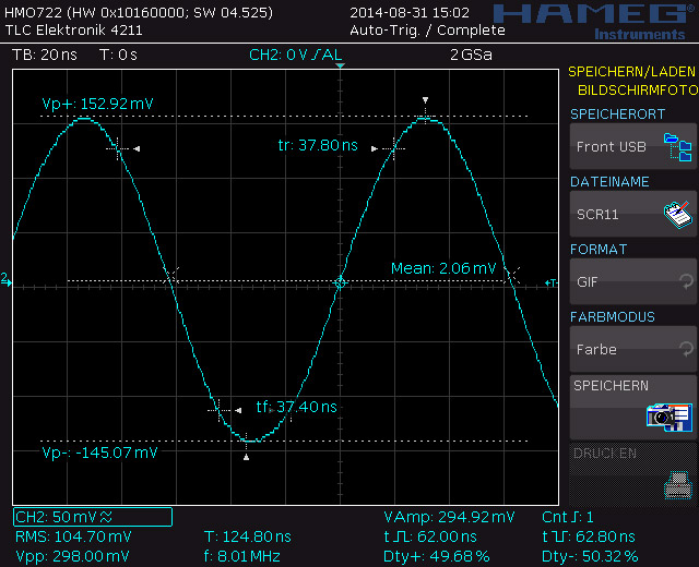 Prüfung eines 8-MHz-Quarzes in einer Prototypen-Schaltung: Ein sicheres Anschwingverhalten und die einwandfreie Funktion in allen vorgesehenen Betriebszuständen stellen ein Muss für den langfristig zuverlässigen Betrieb der Kundenapplikation dar.